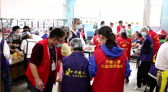 太原天使儿童医院的志愿者与孩子们一同制作美味团圆的中秋月饼,从制作月饼皮到包月饼馅儿再到模具成型月饼,看着一个个月饼的成型,每个人的脸上洋溢着成功的喜悦。
